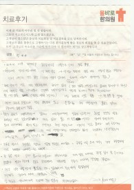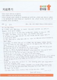 (***님의 자필 후기를 그대로 옮겼습니다.)여기 병원을 알게된건 저의 딸 치료 후 알게 되었습니다.저의 딸 치료를 받을 때 다른 병원하고는 차이가 있다는 느낌이 확실했고 믿음이 가서.... 저도 심장수술 후 1개월이 쫌 지나가는 중에 저도 모르게 맘이 불안해지고 머리도 아파오고 잠도...