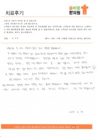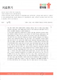(김**님의 자필 후기를 그대로 옮겼습니다.) 저는 평소 자세가 나쁘고 과중한 업무와 스트레스로 인해 등, 허리, 목, 어깨 등 전신 대부분에 통증이 있었는데요 . 그러다 3월에 일주일 간격의 두 번의 교통사고로 인해 통증이 더욱 심해지고 일상생활이 힘들정도로 고통에 시달렸습니다. 6-...