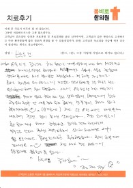 ( 배**님의 자필 치료후기를 그대로 옮겼습니다. )( 특정 의료기관의 이름은 **으로 처리하였습니다.)저는 2017년 7월 경 교통사고를 당한 후 척추 4번과 천추 1번 디스크가 파열되어 수술을 받았으나, 최근 디스크가 재발되어 극심한 통증으로 **병원 응급실에 간 후 MRI 검사 결과 재발...
