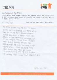 (박**님의 자필 후기를 그대로 옮겼습니다.) 친구 추천으로 한의원을 알고 치료 받기 시작했습니다.5년전에 허리디스크 심각판정을 받고 척추전문병원에서 시술도 받고 주사 치료했는데 효과는 일시적이었습니다.한의원도 정보가 없어서 잘 치료할 수 있을까 의문도 들었는데 생각보다 기대이상이고 다...